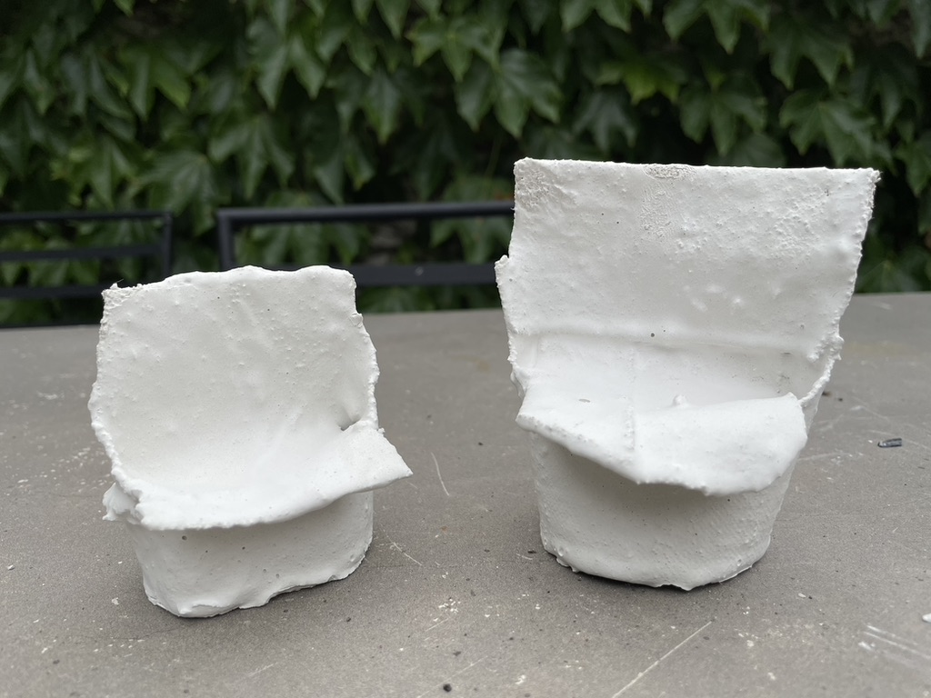 Tiny concrete chairs for Stickball’s Another Tiny Chair Show