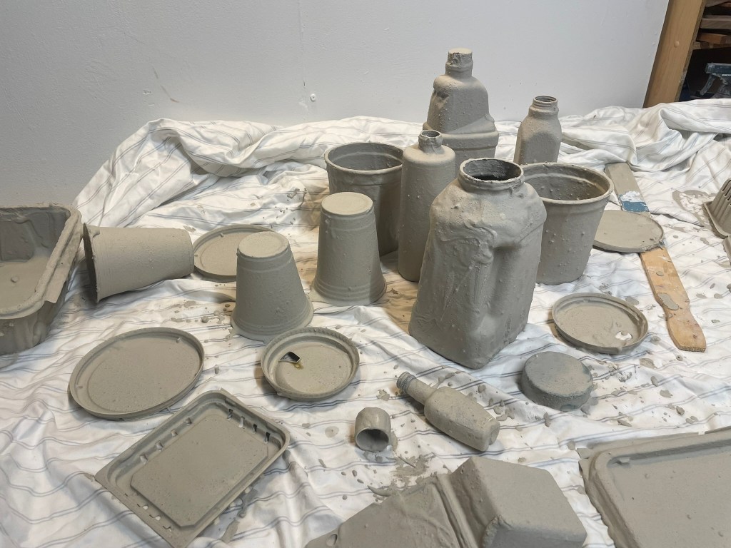 In the summer of 2025 sanitation workers in the city of Philadelphia went on strike and there was no trash pickup for a couple weeks. As recyclables began to pile up in my kitchen I began to think about the illusion of impermanence we are under when it comes to recycling. How much plastic waste actually gets recycled? And how much will out sit in a landfill for the next few thousand years? I took my plastic recyclables from during the strike and encased them in a coating of concrete to remind myself that this shit is probably permanent and we should probably stop using so much of it.