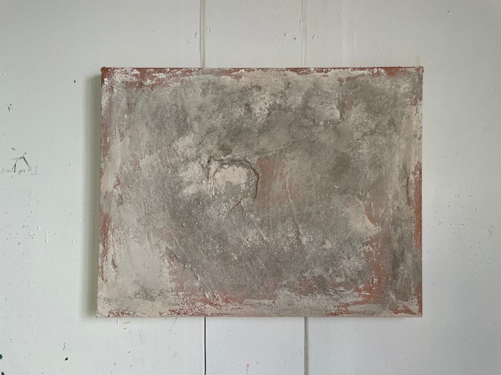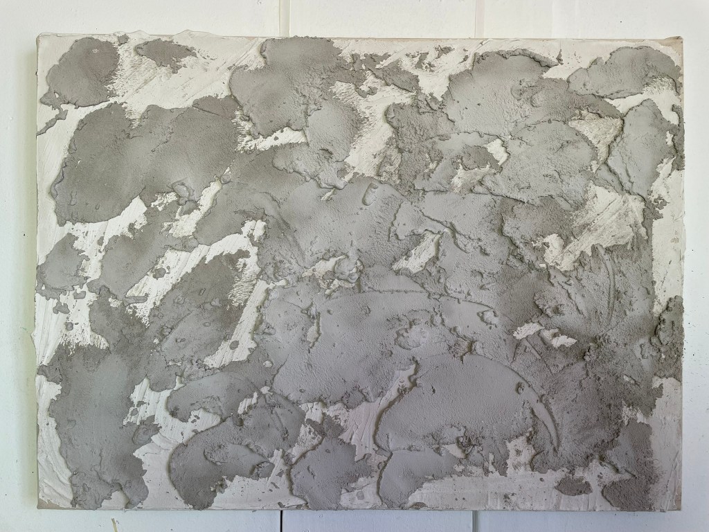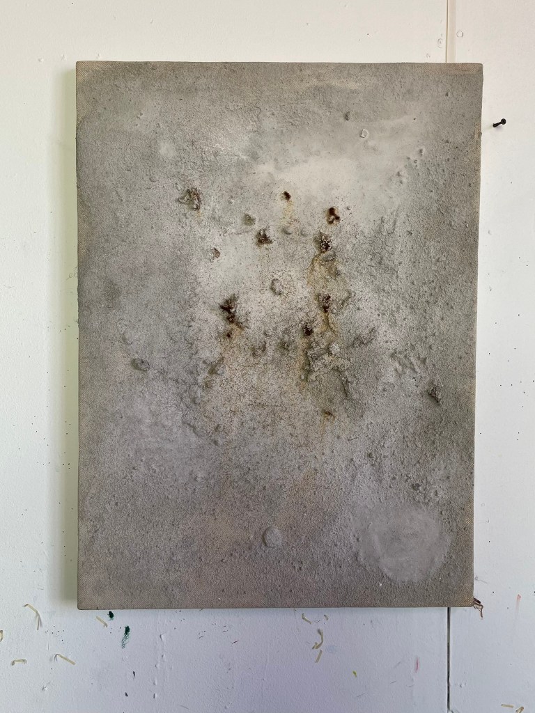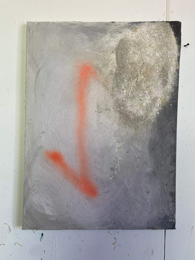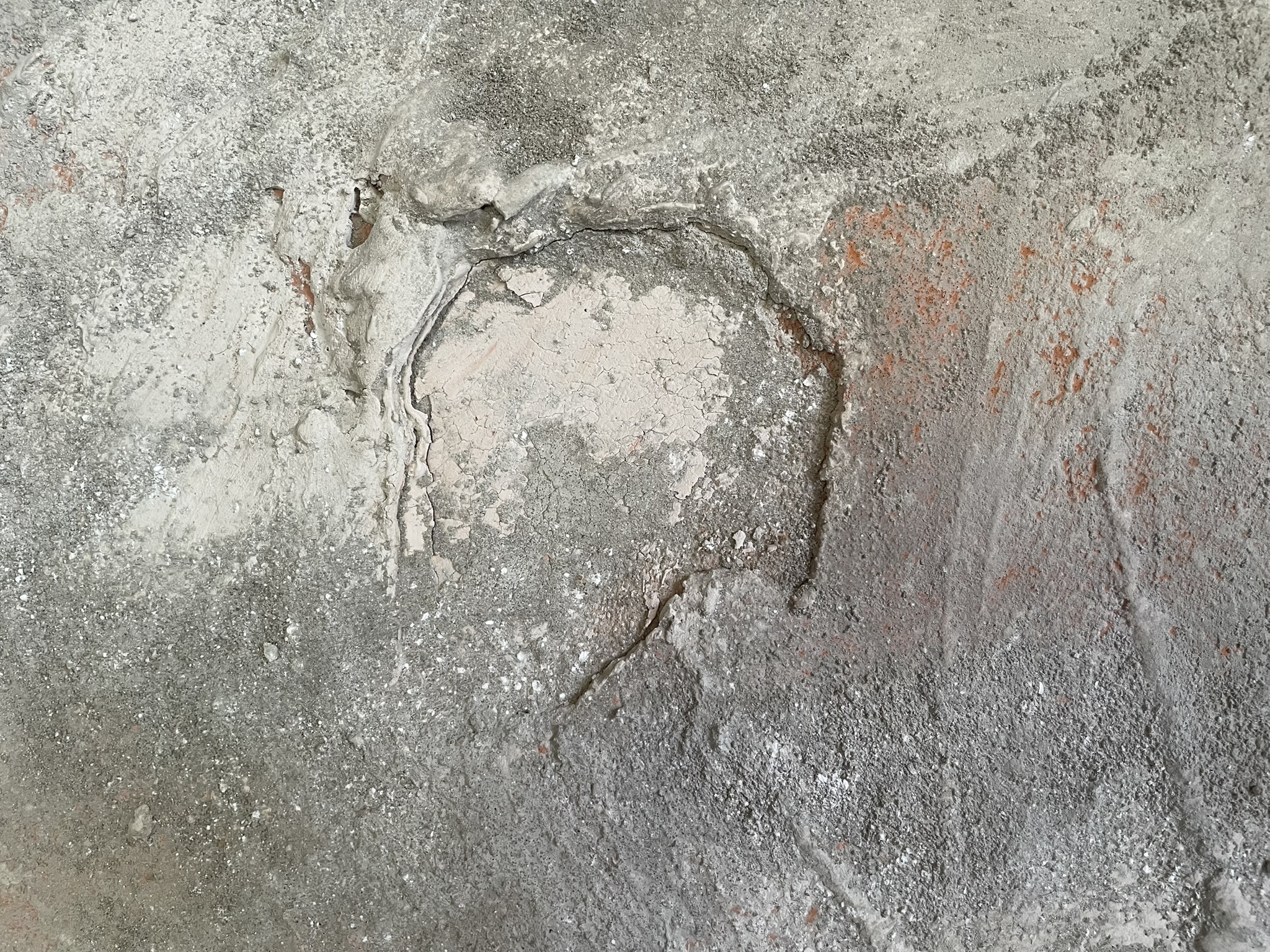 I put quotes around paintings as with the exception of utility orange spray paint there is no paint in any of these paintings. Only concrete, Portland cement, hydrated lime, sand, and plaster. Pigments are iron oxide based.