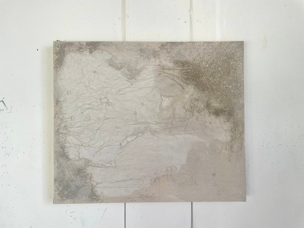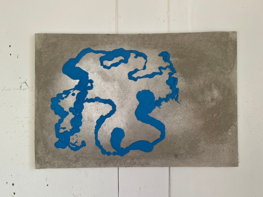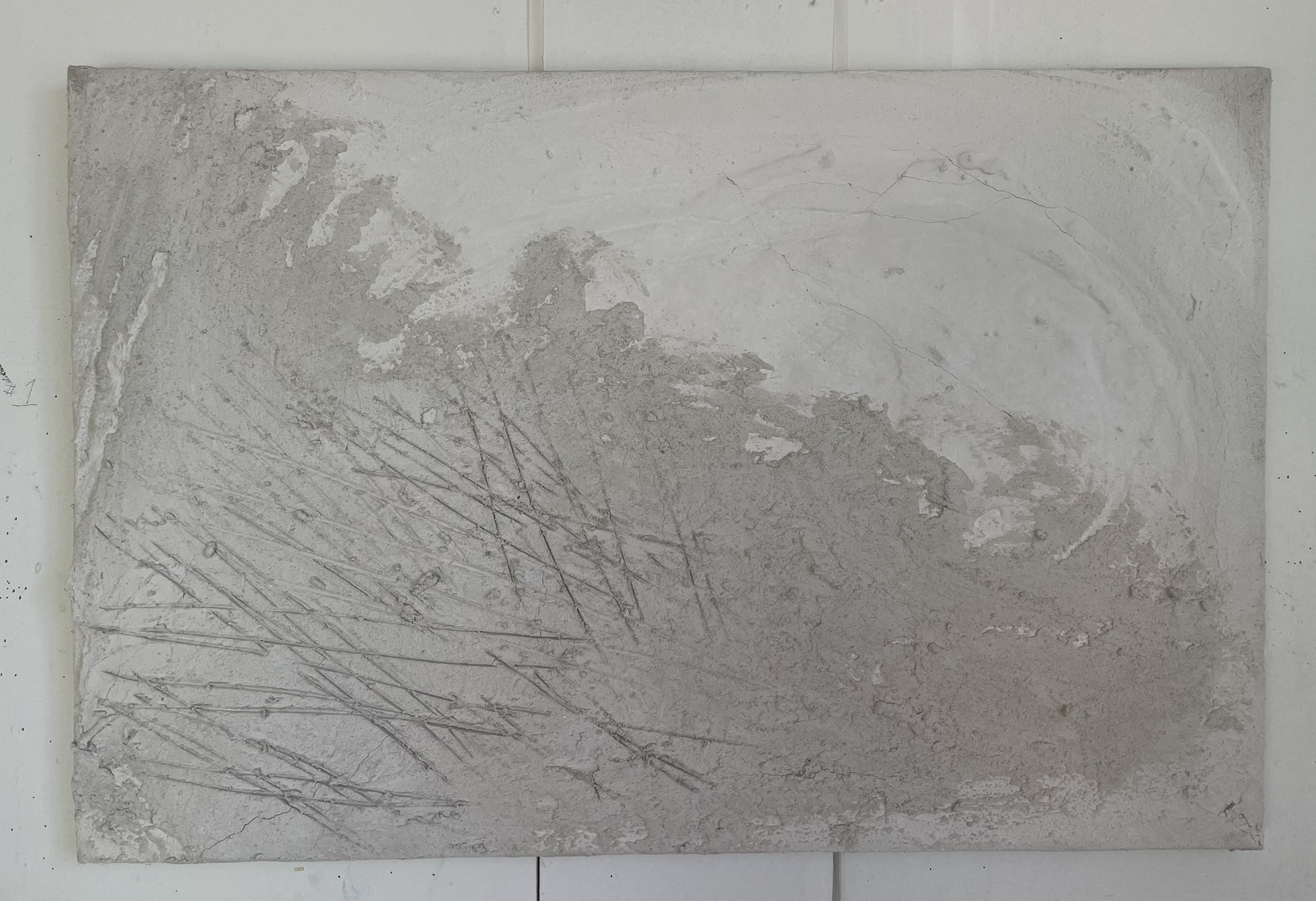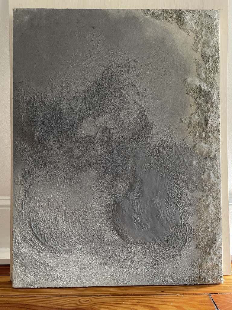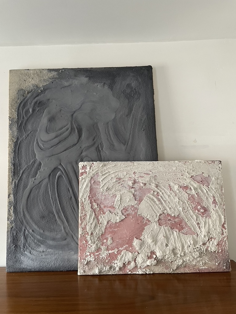 I put quotes around paintings as with the exception of utility orange spray paint there is no paint in any of these paintings. Only concrete, Portland cement, hydrated lime, sand, and plaster. Pigments are iron oxide based.